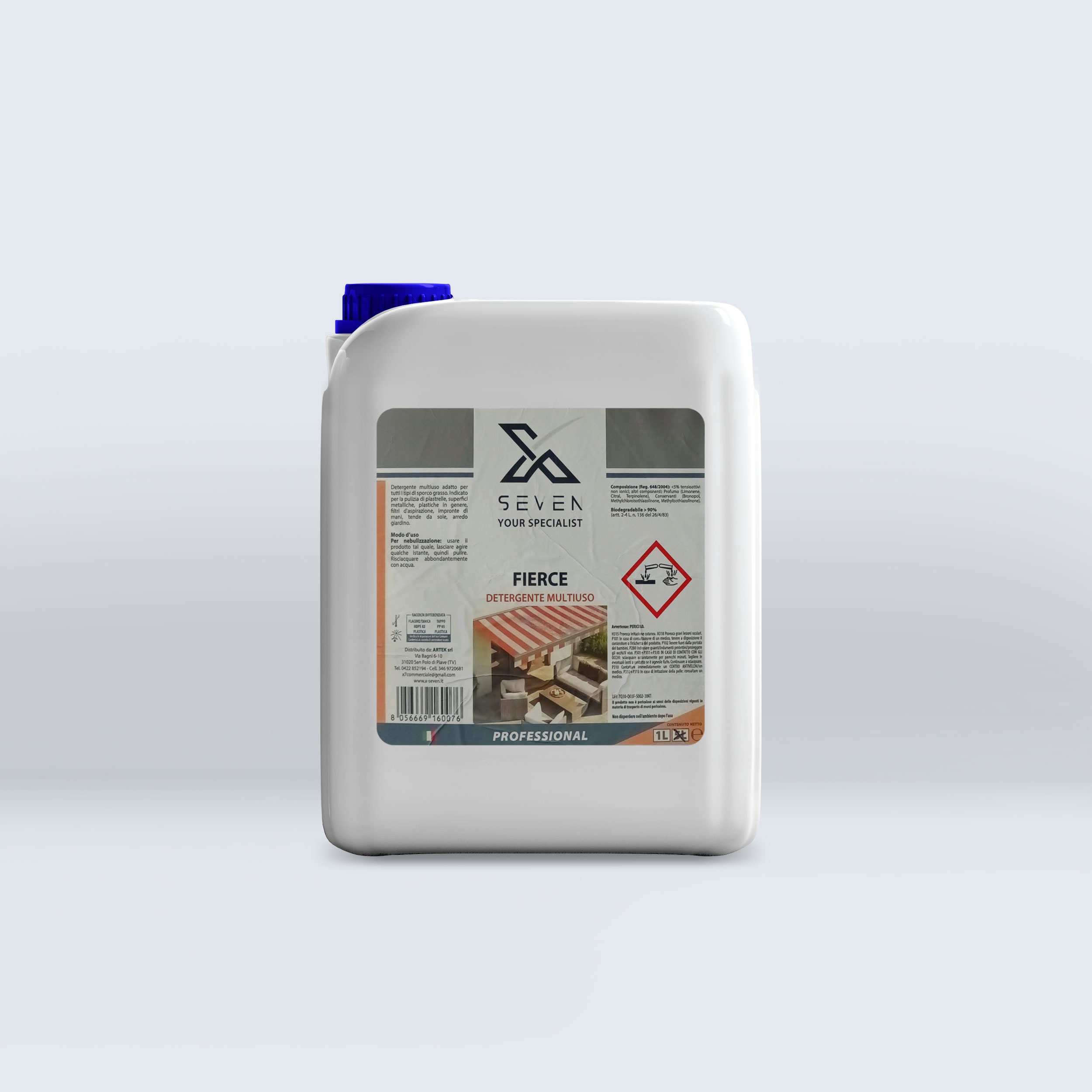FIERCE Detergente multiuso adatto per tutti i tipi di sporco grasso.Indicato per la pulizia di piastrelle, superfici metalliche, plastiche in genere, filtri d’aspirazione, impronte di mani, tende da sole, arredo giardino.