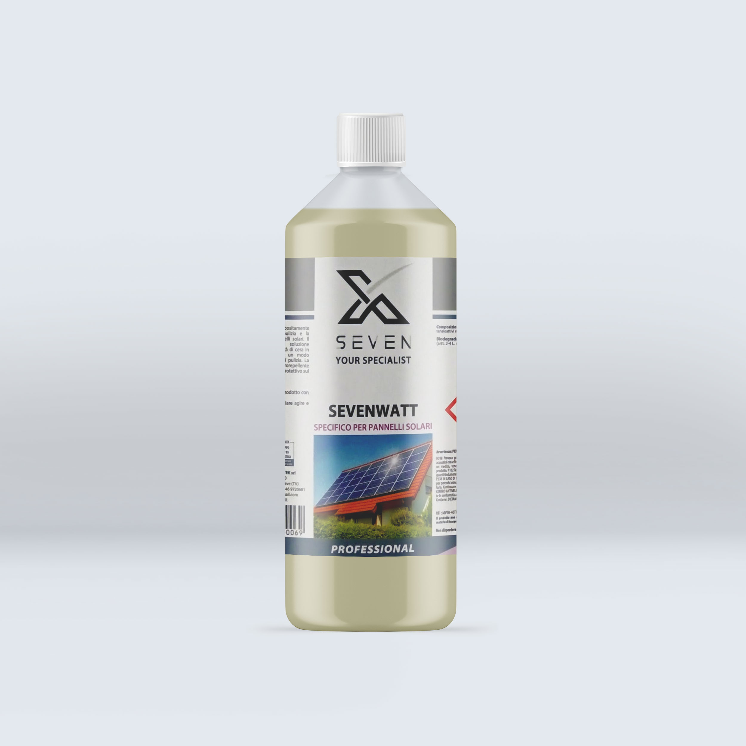 SEVENWATT è un prodotto appositamente sviluppato per la pulizia e la protezione dei pannelli solari.Il prodotto ha una soluzione detergente e proprietà di cera in uno che forniscono un modo efficace e semplice di pulizia.La cera ha un effetto idrorepellente che lascia uno strato protettivo sui pannelli.(Box 12 pezzi).